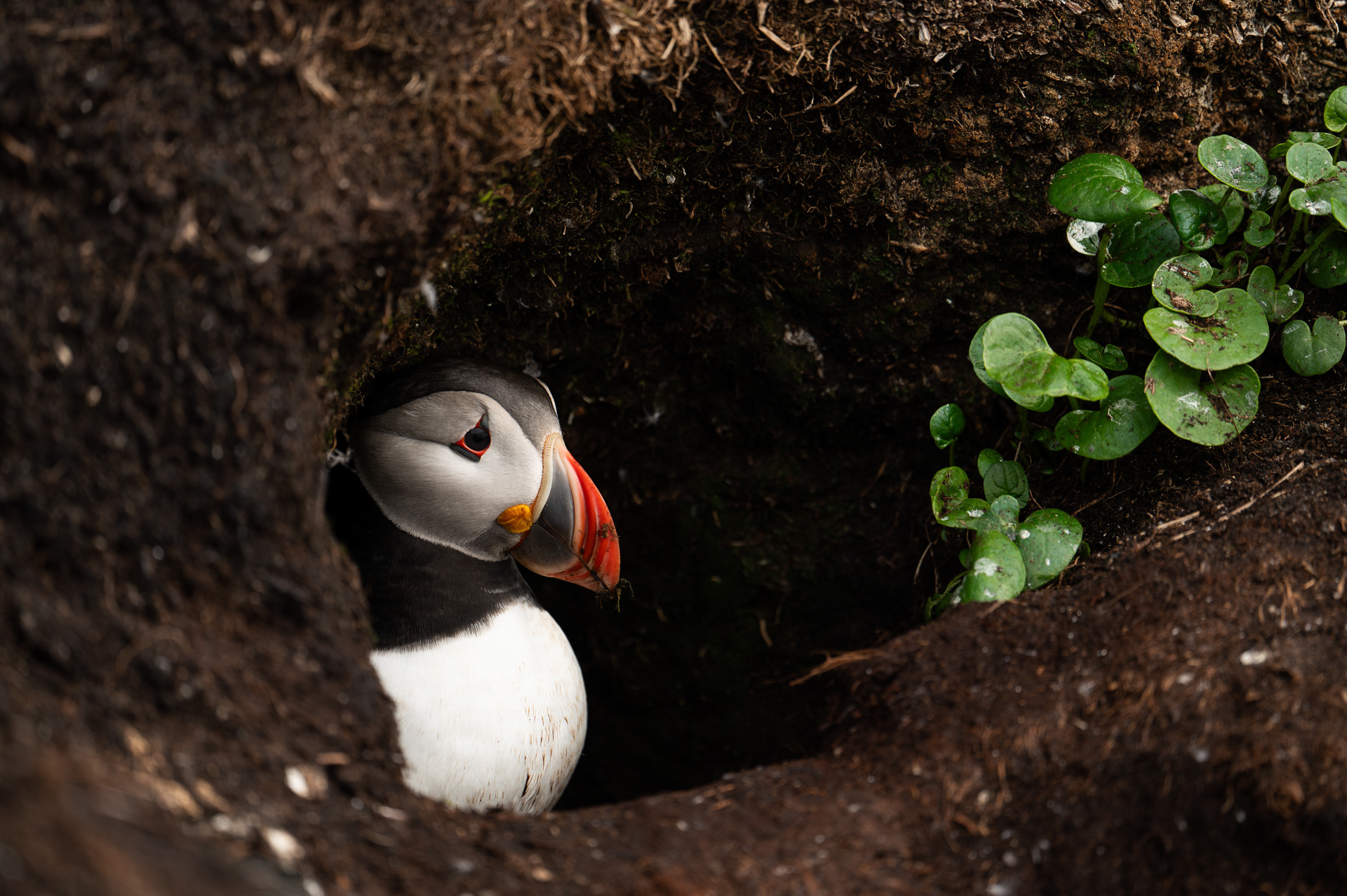 It might be a surprise, but puffins don't breed on cliffs; they are burrow-nesters! You will mainly find them on the higher parts above the rocks, where they dig burrows; the tunnels can be over two meters long! This video shows how the digging process works and what such a burrow looks like from the inside.