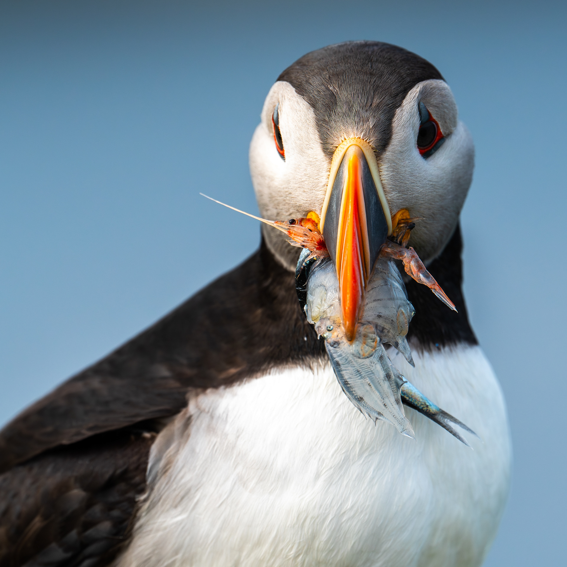 Another fun fact: the yellow, bare skin at the base of puffins' bills is stretchable, creating more space between the halves of the bill!