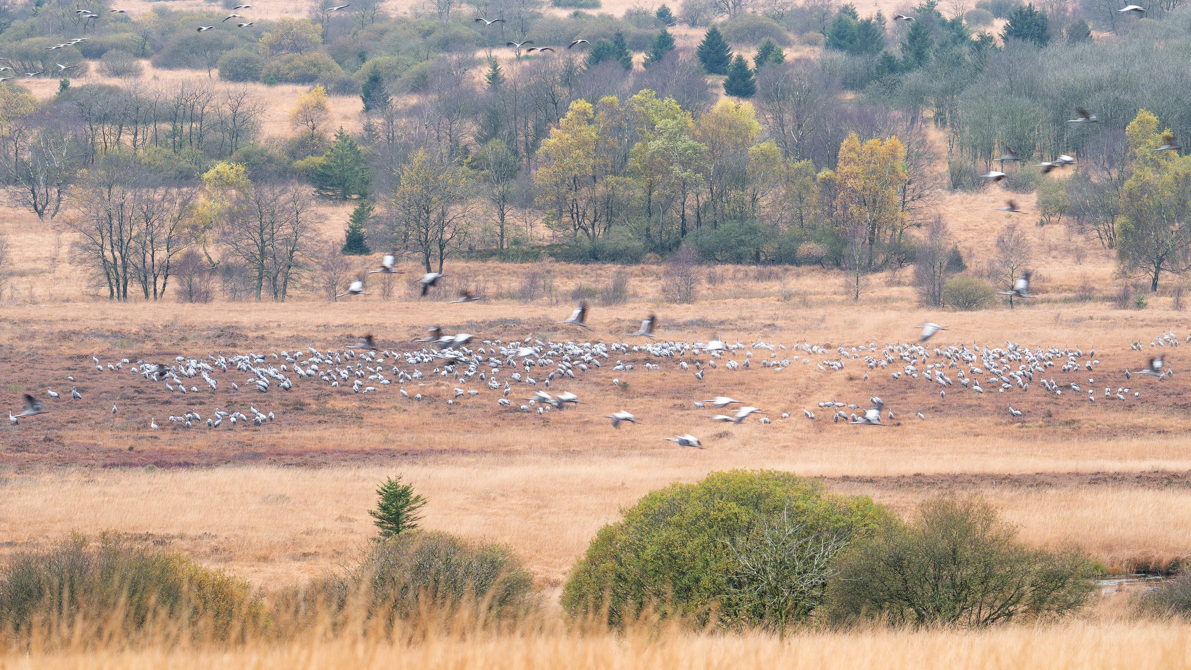 For the next few hours, the flocks of cranes continued to fly overhead: 350, 600, 140, 700… it went on and on. I soon lost count. The lovely thing about cranes is that they fly overhead with such a loud call. For me, that's the last song before the winter half-year begins. From the moment the cranes have flown over, I realize that darkness briefly triumphs over light. In March, when the cranes fly north again, they trumpet loudly like lackeys, announcing the return of spring.
