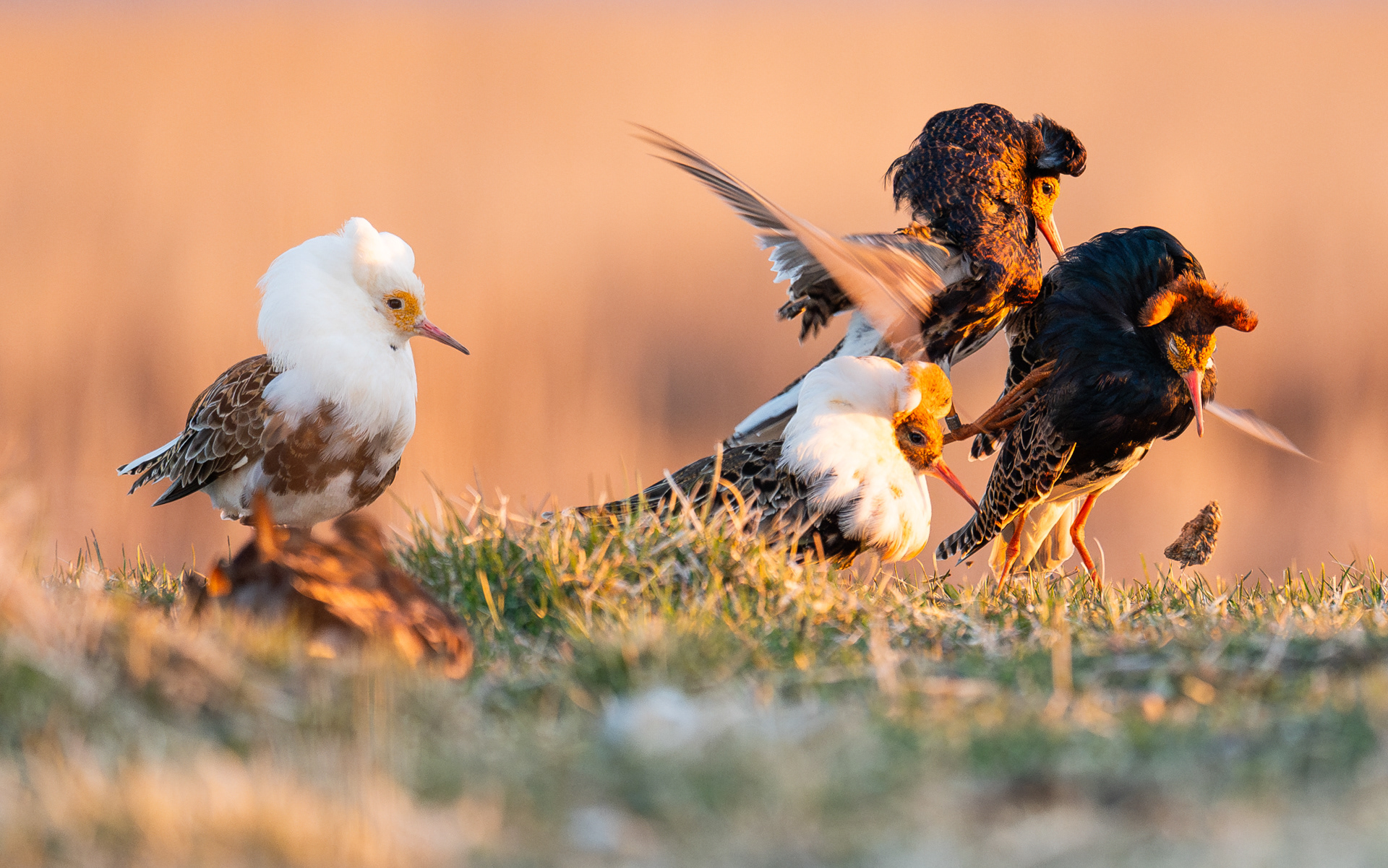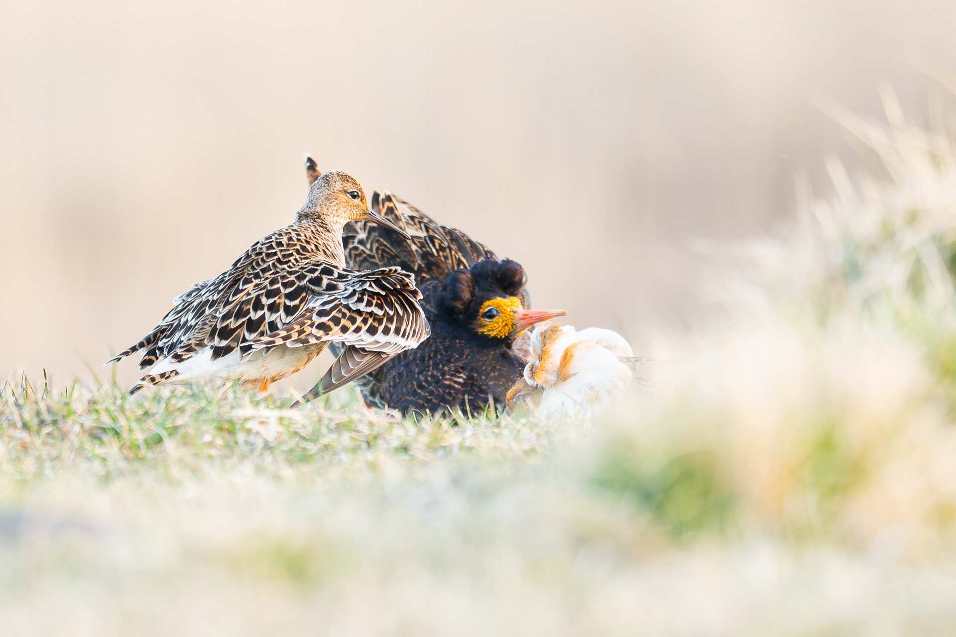 Pugnax means something like “fighting spirit”. Ruffs are a fascinating wader that, thanks to a so-called supergene, come in three morphs: dominant, satellite, and faeder. This is especially noticeable in the males—and yes, the dominant males are real fighters. Furthermore, they are birds that do full justice to the baroque... or should we call it kitsch? Read more about it in my blog!